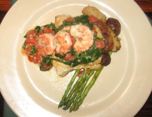 Heat olive oil in hot pan. Add Grouper and sauté each side 4 minutes..set a side. In same pan add roasted garlic, pistachio nuts, and tomatoes……sauté for 1 minute. Add lemon juice, and vegetable stock…..reduce down 3 minutes. Add parsley and spoon over Grouper filet.